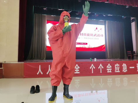 為進一步普及應急救援知(zhī)識,提升公司整體應(yīng)急救援能力(lì),推(tuī)動安全生(shēng)產工作的持續健康發展,根據《關於開展“安全生(shēng)產(chǎn)月”活動實施方案(àn)的通(tōng)知》安排,6月16日,公司在職(zhí)工會堂(táng)組織開展了應急救援器材技能比武活動。本次比(bǐ)武(wǔ)項目(mù)包括(kuò)正壓式空氣呼吸器和輕型防護服穿戴、防毒麵具和輕型防護服佩戴、心肺複蘇模擬救援三項內容,共有來自(zì)生產廠區及後勤部門的63名員工參(cān)賽。