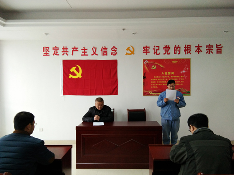 2017年(nián)12月28日上午,公司黨委(wěi)在辦公樓黨員活動室舉行了2017年度新發展黨員入黨宣(xuān)誓儀式,宣(xuān)誓儀式由公司黨委(wěi)辦公室主任徐愛(ài)民主持。公司黨委本年度新發展的5名預備黨員孟凡友、米長發、王誌慧、丁麗(lì)娜、徐超及五人所在的支部書記和(hé)部分黨員(yuán)代表參加了(le)宣(xuān)誓儀式,公司黨委委員王曙光出席了儀式並(bìng)領(lǐng)誓。 宣誓儀式上,全體宣誓人員麵向黨旗在領誓人的帶領下進行(háng)了莊(zhuāng)重的入黨宣誓,新黨員代表丁麗娜同(tóng)誌代表預備黨員作了表(biǎo)態發言,公司黨委委員王曙光代表公司黨委對新老黨員提出了明確的要求,希望全(quán)體黨員牢記入黨誓詞,踐行黨員義務,以黨(dǎng)員的標準嚴格要求自(zì)己,不忘初心,牢記(jì)使命,充分發揮黨員的先鋒(fēng)模範作用,為推動企業(yè)的持續健(jiàn)康發展,做出自己應有的貢獻。